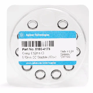 Inlet liner O-ring, graphite, for splitless liner. Temperatures above 350°C, 9.63 mm od, 6.52 mm id seals, 10/pk